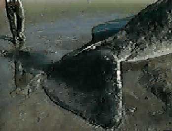Здесь следует сделать небольшое отступление. Не все об этом знают, но весь процесс уничтожения кита был заснят на видеопленку жуналистом портлендского Channel 2 Полом Линманом (Paul Linnman) — в качестве иллюстраций в этой статье используются кадры его оператора. Эта запись в формате Quicktime есть в интернете (например, на специальном сайте, посвященном этому знаменательному событию). Вариант хорошего качества занимает 11 МБ, но он того стоит: это, безусловно, одна из самых смешных записей в истории телевидения. В репортаже Линмана сначала показывают установку динамитных шашек и интервью c начальником саперов, который выражает уверенность в успехе предприятия. Потом на пленке виден взрыв и слышны радостные вопли зрителей, которые через несколько секунд сменяются испуганными криками. С неба начинают падать куски гнилого мяса, камера дергается, поворачивается и быстро движется в противоположном киту направлении.