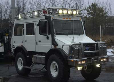 Собственно, MaxiMog — это даже не машина, а целый технический комплекс, предназначенный для длительных экспедиций по жаре, снегу, болотам и крокодилам. В основу автомобиля положено шасси Mercedes Benz Unimog, однако от оригинала в MaxiMog осталось процентов тридцать. Джип может пересекать водные преграды глубиной до полутора метров, карабкаться на сорокапятиградусные склоны, поддерживать жизнь пассажиров в самом неприятном климате и при этом не ломаться.