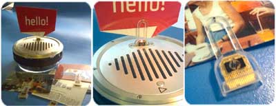 Микрочип вмещает в себя один звуковой файл размером до 240 КБ — этого хватает прмерно на 30 секунд сжатого звука. Информация записывается и считывается либо при помощи специального устройства, либо (в перспективе) телефона и MP3-плеера. Эдамс и Фролих мечтают завалить своими скрепками весь мир, чтобы ими пользовались так же часто, как, скажем, кассетами или компакт-дисками. К тому же HP клянется, что цена будет вполне приемлемой — не выше 70 пенсов за штуку. Чудо-прищепку демонстрировали в конце прошлого года на нью-йоркской выставке инноваций «Больший надежды» (Great Expectations). Всем понравилось. Забавно, что незадолго до выставки HP испытали скрепку на фокус-группах: дамы от говорящей шпильки пришли в дикий восторг, мужчинам же звука оказалось мало — они потребовали видео. | ||||||||||||