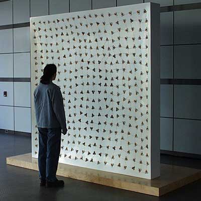 Затем вместе с прогрессивными приятелями-поклонниками группы Tool Хитон перепрограммировала «мозги» Furby и снабдила уже бывшие игрушки инфракрасными сенсорами. В результате роботы стали «просыпаться» не от прямого контакта, как это происходит с нормальными Furby, а от теплового импульса. Закончив с разделкой, Хитон соединила все четыреста треугольных мордочек в сеть и прикрепила их на специальную стенку размером приблизительно два на два метра с заранее проделанными в ней отверстиями.