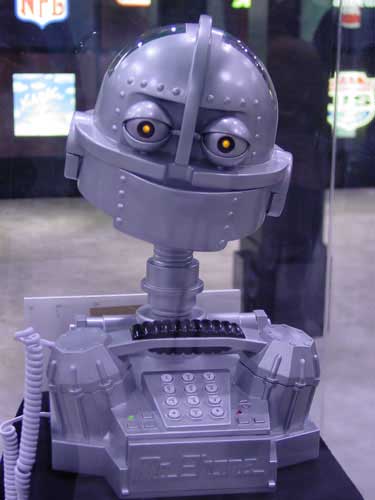 Сегодня мы для разнообразия поговорим не о сотовых телефонах, а об обычных. Вот вы по какому предпочитаете разговаривать? К примеру, у редакции «Тостера» в настоящий момент в ногах валяется советский телефон ТА-72 цвета апрельского петербургского неба в три часа дня. На пластмассовом дне аппарата написано: «РРО.218.060ТУ, Цена 20 р.» Каждый разговор по этому телефону начинается дерганьем за трубку, из-за чего вся конструкция взлетает в воздух, а потом с грохотом падает обратно на паркет. И ничего ей от этого не делается. По-видимому, военная модель. За долгие годы эксплуатации, однако, этот замечательный телефон порядком нам надоел, поэтому мы давно думаем о том, чтбы его сменить. Единственное, что нам мешает — это лень, не позволяющая убить неделю на поиск Того, единственного телефона, который был бы таким же приятным на вид и удобным в использовании, как ТА-72 (как все-таки на танк похоже, правда?). Если бы, однако, в соседнем магазине продавался за приемлемые деньги телефон Mr. Phone, который скоро будет выпускать контора Polyconcept USA, мы бы кинулись в этот магазин не задумываясь. Судите сами: это... устройство выглядит, как настоящий робот, разговаривает человеческим голосом, запоминает определенные номера и когда, к примеру, звонит Галя, кричит «Это Галя!!!», а когда Надя — «Это Надя!!!» (этот ряд вы легко можете продожить сами).