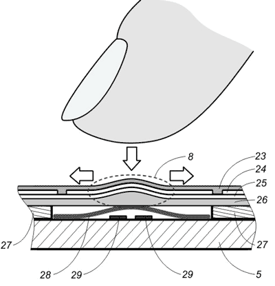 «Окончательное решение для железа оказалось простым и хорошо известным — клавиши стандартной телефонной клавиатуры (0-9, * и #), нарисованные на поверхности touchpad. Ввод цифр осуществляется обычным способом — прикосновением к клавишам или нажатием на них (под клавишами могут быть дополнительно расположены обычные «кликающие» механические переключатели) — все это хорошо известно. А вот для ввода букв я предложил использовать касательное движение от центра соответствующей клавиши в направлении символа, изображенного на этой же клавише. По сути, речь идет о наложении на стандартную клавиатуру с вертикальным нажатием на клавиши дополнительной — с «горизонтальным нажатием» на клавиши. При этом, например, для ввода латинской буквы «а» надо совершить в пределах клавиши «2» касательное движение от центра клавиши «2» вверх с последующим прерыванием касания (или без, для многократного ввода буквы «а», как и в обычной клавиатуре). Это интуитивно понятно, т.к. буква «а» изображена на «севере» (т.е. вверху) клавиши «2», в то время как, например, латинские буквы «b» и «c» расположены, соответственно, на «востоке» и на «юге» клавиши «2».