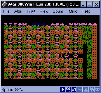 Если вы не знаете правил игры в Boulder Dash, вам должно быть стыдно. Напомним, тем не менее, основные принципы. Игровое пространство дискретно и поделено на клетки. В каждой клетке может находиться либо герой, либо земля, либо валун, либо стена, либо алмаз, либо враг, либо амеба. Клетка может быть и пустой. Землю герой умеет копать, валуны, если за ними есть пустое пространство, двигать, алмазы класть к себе в карман. В Boulder Dash есть «верх» и «низ», поэтому камни имеют свойство падать и убивать героя на месте. На каждом уровне необходимо, уложившись в определенный срок, собрать все алмазы, а потом найти выход — мигающую клетку.