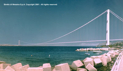 На днях итальянцы, наконец, приняли одно из самых дорогостоящих решений в своей истории: они решили перекинуть мост через Мессинский пролив, который отделяет каблук материка от Сицилии. Ширина пролива — три километра, поэтому конструкция стоимостью в 4,3 миллиарда долларов станет самым длинным подвесным мостом в мире (3,7 км).