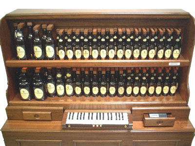 Нет, правда. Компания Peterson, занимающаяся производством различных музыкальных инструментов, выпустила к своему 50-летию орган, в котором действительно вместо обычных труб используются пивные бутылки. Механизм действия инструмента точно такой же, как и у классического органа: воздух проходит через узкое горлышко бутылки, резонирует от стенок, и получается божественная мелодия. Высота ноты варьируется в зависимости от длины горлышка и самой бутылки. У бутылок даже есть одно преимущество: их можно наполнить жидкостью и, соответственно, извлечь больший диапазон звуков. Peterson использовала для этой цели нефть, потому что она практически не испаряется. Видите, как просто. А идея эта появилась на свет в конце XVIII века на острове Хельголэнд (Helgoland), когда местной церковной общине надоело каждый месяц платить за настройку органа. Тогда святые отцы обратились к человеку по имени Йоханн Кюлевайн (Johann Samuel Kuhlewein), который, собственно, и придумал использовать вместо труб бутылки. Отличие состояло в том, что изменения влажности и других природных факторов меньше влияют на стекло, чем на металл или дерево. К тому же прихожанам, которые явно не были пуританами, смотреть во время службы на пивной орган было вдвойне приятнее.