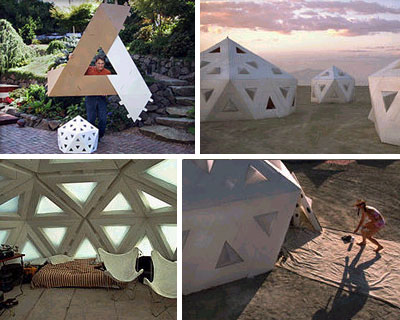 Ну-ка, друзья, напрягите мозги и представьте, что у ваших ног лежит большая груда довольно больших пластмассовых треугольников, которые можно прикреплять друг к другу под разными углами. Посреди каждого треугольника есть треугольное же прозрачное окно. Вы снимаете рубашку, плюете на руки и возводите из этих деталей изящное, математически выверенное строение. Теперь вы имеете представление о том, что такое Icosa Structures.