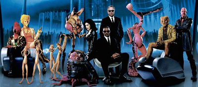 Приятно и то, что ребята не поленились и нарисовали воз и маленькую тележку новых инопланетян, среди которых попадаются маленькие шедевры — например, уже упомянутое племя из камеры хранения или многорукий почтовый служащий, работающий на сортировке писем. Прекрасна кость, брошенная Сонненфельдом «крепким орешкам» из задних рядов кинотеатра — мускулистое существо яйцебород, после сцены с которым из зала начинается массовый исход родителей с детьми. Сколько по яйцебороду не бей, звук раздается такой, как будто колотят металлический рельс, а вот борода у него такая, что если по ней врезать — все, каюк. Прекрасен говорящий бульдог, который, наверное, сильно проиграл от перевода. Прекрасен Майкл Джексон, желающий занять должность агента М. Прекрасен язык, на котором Джей беседует с инопланетянами. Как сообщает нам услужливая IMDB, на самом деле это разновидность стиля spit rap, а человек, который отвечает Джею, в этом spit rap самый большой гуру. Очень удачны мусорный фантастический фильм, который показывают в «Людях» аж два раза, и очкарик-uebergeek из кинопроката. Надо полагать, что этот персонаж — косвенная цитата из Хичкока. Надо же нам найти какую-нибудь косвенную цитату. С гэджетами, увы, получился полный провал. Фаллическими пушками уже никого не удивишь. Машина, которая приезжает по нажатию кнопочки на дистанционном управлении, банальна. Видеофон — пфффф! Очищалка памяти — пфффф! Хорош, пожалуй, только автопилот в виде надувного Томми Ли Джонса, которого, кажется, заказывали той же конторе, что делает резиновых овец (осанна этим милым существам была спета на страницах нашего журнала еще в мае). Страшно смешно выглядят в фильме проплаченные бренды: белье от Victoria's Secret, самая уродливая модель «Мерседеса» какого-то там класса, очки Ray-Ban и сотовый телефон производства компании, которая заплатила так мало, что он попал в кадр всего на пару секунд. После того, как понимаешь, что кругом спонсоры, начинаешь искать намеки даже в вещах, на которых нет ярлыка: костюмы от какого кутюрье носят люди в черном? Холодильник какой марки стоял в квартире у двухголового чувака? Не на диване ли из IKEA сидит толстяк Сонненфельд, который играет отца семейства, проживающего в старом доме агента Кей? В общем, резюме такое: если больше идти некуда, то можно и на «Людей в черном». Кстати, в чем заключается сюжет фильма, мы так до конца и не поняли. Наверное, эта их сверкалка подействовала. | ||||||||||||