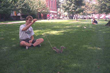 Ловля белки на орех, как полагают ее фанаты — это экологически чистый и неагрессивный спорт будущего. Для того, чтобы им заняться, необходимо несколько вещей. Прежде всего, следует соорудить удочку с приманкой. Здесь все просто: берете крепкий прутик, прикручиваете к ней леску, а к леске прикрепляете орех. Белки, как сообщает нам А. С. Пушкин, очень любят орехи. Потом следует найти парк с белками, что, к сожалению, не так-то просто, особенно в крупных городах. Мы, например, однажды пошли искать белок в Сокольниках, но, к сожалению, почему-то не нашли самих Сокольников: наверное, у нас была плохая карта, но в вместо парка мы попали на какую-то общественную свалку, равномерно покрытую слоем из бутылок «Святой источник» и обертками от жевательной резинки «Ригли». Когда парк будет найден, охотник должен локализовать белку. Обычно белки живут на деревьях неподалеку от мест, где их кормят. Как только голодная белка заприметит орех, она спустится и начнет на него глазеть. Тогда, если вокруг много людей, от них имеет смысл удалиться. белка дожна прыгать следом. После этого начинается непосредственно ловля. Приманивая белку словами вроде «ну ползи сюда, кисуля; вот так, хорошо», надо поднимать и опускать удочку, чтобы белка поддалась гипнозу и приблизилась к охотнику. Не следует сразу же снабжать белку орехом — тогда игра кончится слишком быстро. Вместо этого надо ее дразнить, хотя и не слишком долго — грызун может обидеться и свалить домой, не отобедав. Кульминация ловли происходит тогда, когда белка прыгает на орех и хватает его обеими лапами. Как утверждают очевидцы, если она не догадывается в этот момент перекусить леску, то отпускает добычу, падает на землю и улепетывает по направлению к ближайшей сосне.