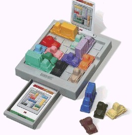 Головоломка представляет собой квадратное поле 6 на 6 клеточек, в котором стоят машинки, образуя солидную пробку. Машинки бывают двух видов: двухклеточные и трехклеточные, но все могут двигаться только вперед или назад. Задача состоит в том, чтобы, передвигая автомобили, вывести красную машинку за пределы поля через единственные «ворота» в правой грани. Как видите, правила достаточно просты. Прелесть головоломки заключается в том, что если машинки расставлены с умом, то ее решение может быть весьма нетривиальным. Если есть время, можете попробовать свои силы в Java-версии. Уровень «эксперт» занял у разных сотрудников редакции от двух до пятидесяти трех минут, причем минимальное число ходов у нас в итоге получилось 46.