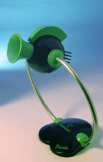 Каждый, кто задумывался над диадой человек-компьютер, неизбежно должен был прийти к мысли, что в компьютерной периферии не хватает пары важных устройств для взаимодействия с носом пользователя. Этот орган несправедливо обделен вниманием по сравнению с ухом и глазом. Есть аудиоколонки, микрофон, принтер, сканер. Но где же смеллер и стинкер? Попытки создать последний, во всяком случае, имели место. Прототип устройства вывода запаха американская компания Aromajet продемонстрировала на конференции разработчиков игр в Сан-Хосе в 2000-ом году. Прибор под названием Pinoke, выглядевший, как автомобильный клаксон, укрепленный на металлическом обруче, должен был позволить обонянию геймеров принять участие в игровом процессе наряду с другими чувствами. Гребень сверху — это сменный картридж с компонентами запахов. Предполагалось, что каждой игре будет соответсвовать определенный набор уникальных ароматов. Картриджы для NFS начинялись бы запахом бензина и горелых покрышек, для Quake — ароматом, надо полагать, мужcкого пота и парного мяса.