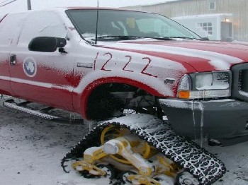 Гиффен начал работу над проектом в марте 2001 года и накопил с тех пор аж 3254 фотографии, примерно треть из которых ему прислали посетители сайта со всего света. В сутках всего лишь 1440 минут, так что на каждую минуту уже сейчас приходится по несколько снимков — неохваченных минут не осталось. Легко заметить, что на многих фотографиях изображены одни и те же «часы» — здоровый лист грубого картона, на которой наклеены листы формата A4 с разлапистыми черными цифрами. Этот циферблат Гиффен всегда возит с собой на багажнике своего байка (вот сейчас он заканчивает турне по периметру Австралии) и просит всех встречных с ним попозировать. Ну, а на чужих кадрах чего только ни увидишь; попадаются даже фотографии и вовсе без людей, как например вот этого снегоходного автомобиля из Антарктиды: