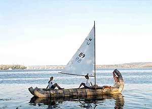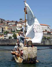 Как по вашему, дорогие читатели, на каком плавучем средстве передвигается спичрайтер бывшего американского вождя Билла Клинтона? На трехэтажной яхте? Двухмачтовом катамаране? На позолоченном моторном плоту? Все мимо. Отставной суфлер Билли рассекает водную гладь на дикарского вида лодке, которую он самолично построил из — постарайтесь прочитать правильно — 165 321 винной пробки. Идея поплавать на пробках проникла в голову Джона Поллака (John Pollack), когда ему было шесть лет. С той поры маленький Джон начал остервенело коллекционировать винные затычки и к 36 годам в его распоряжении находилось около 70 тысяч экземпляров. Тогда-то он и нанес исторический телефонный звонок своему старинному другу, архитектору Гарту Голдстейну (Garth Goldstein), и рассказал ему о своей затее. Повесив трубку, Гарт немедленно погрузился в черчение и через некоторое время разработал концепт-бот на основе пробочных шестиугольников, стянутых резинками и рыболовными сетями. Оказалось, для воплощения Гартовых дум в реальность потребуется еще целых сто тысяч бежевых цилиндров. Ждать было, видимо, невтерпеж, или просто у Джона утихла страсть к коллекционированию — так что недостачу друзья выклянчили у крупнейшего американского производителя пробок Cork Supply; очевидно, в обмен на лакомое место под рекламу на парусе будущей лодки. После того, как через два года тысячи пробок стараниями бригады волонтеров были превращены в гигантский плавучий лапоть, Джон с Гартом совершили на нем рискованное двух-с-хвостиком-недельное путешествие по португальской реке Дуро (Douro) под приветственное бибиканье португальских авто и восхищенные «ахи» прелестных португалок. Португалия, если вы не в курсе, ведущий поставщик пробки, а виноградники по берегам Дуро обеспечивают всю планету портвейном, да-да.
