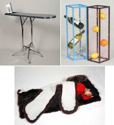 Когда изобретают новый полезный гэджет — это всегда приятно. Когда это делает студент — приятно вдвойне. Понимаешь, что это мы тут сидим, статейки сочиняем и сотый раз остаемся на второй год, а где-то студенты занимаются делом и изобретают важные вещи. На эти мысли нас навела экспозиция выставки Ideal Home Show, которая только что прошла в Лондоне. Выставка эта ежегодная и устраивается чуть ли не с 1908 года, каждый раз демонстрируя тучу якобы идеальных предметов интерьера и обихода. Интерес в этом году представлял раздел «концептов», в котором были выставлены 15 студенческих изобретений. Все 15 шедеврами, конечно, не являются, но некоторые вещи нельзя обойти вниманием. В числе неинтересного находятся: убирающийся в стену стол, специальная сумка для грязного белья, стол со встроенными шашками и подсвечником, кухонная подставка для всякой всячины, мольберт с секретными полками, бумажный стул, автоматически поворачивающийся за Солнцем шезлонг и рыба-чистильщик бассейнов. Дальше по нашему рейтингу идут несколько элегантных дизайнерских решений. Во-первых, это зеркальная гладильная доска. Отутюжил манишки — переворачиваешь столешницу на 90 градусов, и доска превращается в зеркало. Это, кажется, способно решить знакомую всем проблему: гладильную доску в собранном состоянии абсолютно некуда ставить. Впрочем, может оказаться, что зеркало тоже ставить некуда. Во-вторых, это хранилище для всего, представляющее собой пронизанный проволокой жесткий параллелепипед. В проволоку можно напихать лимоны, бананы или бутылки чилийского вина — и все будет держаться. На картинке выглядит весьма симпатично. И в-третьих, меховое одеяло с карманами для ног и рук, в которое можно закутаться так, как нельзя закутаться ни в одно другое одеяло. Достаточно засунуть конечности в соответствующие им карманы, а потом немного покрутиться.